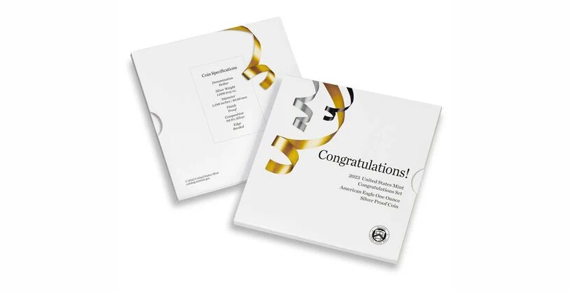 At its core, the Congratulations Set features the American Eagle One Ounce Silver Proof, one of the most beloved and popular coins in the numismatic world. What sets this collection apart is its dynamic nature—each year introduces a new design, adding an element of exclusivity and freshness to the collector's set.